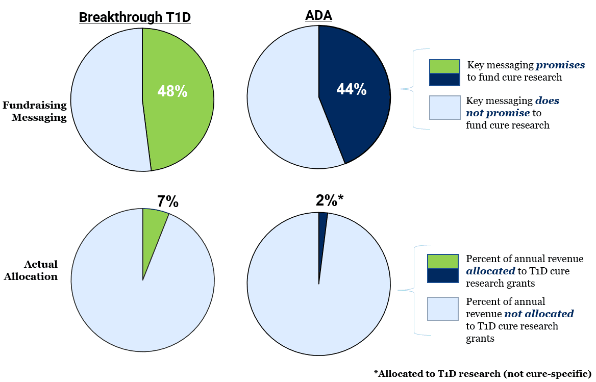 - 7% of Breakthrough T1D revenue went to cure-focused contracted grants; <2% of ADA revenue went to cure-focused research grants.