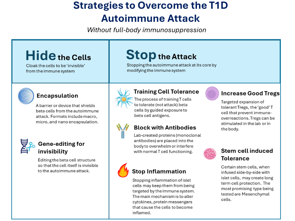- Overcoming the autoimmune attack in T1D is a vital part of a Practical Cure.